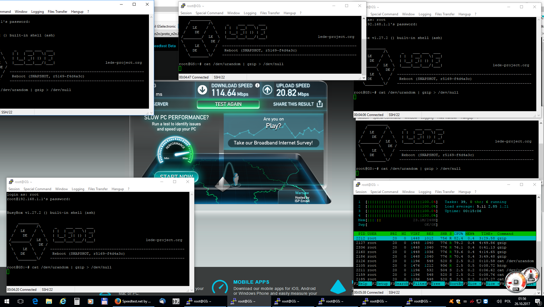 Kurczę co wy tak słabo z tymi transferami, ja pod takimi obciążeniami procesorów  w routerku i z Play LTE przez e3372 mam takie osiągi najniższe smile